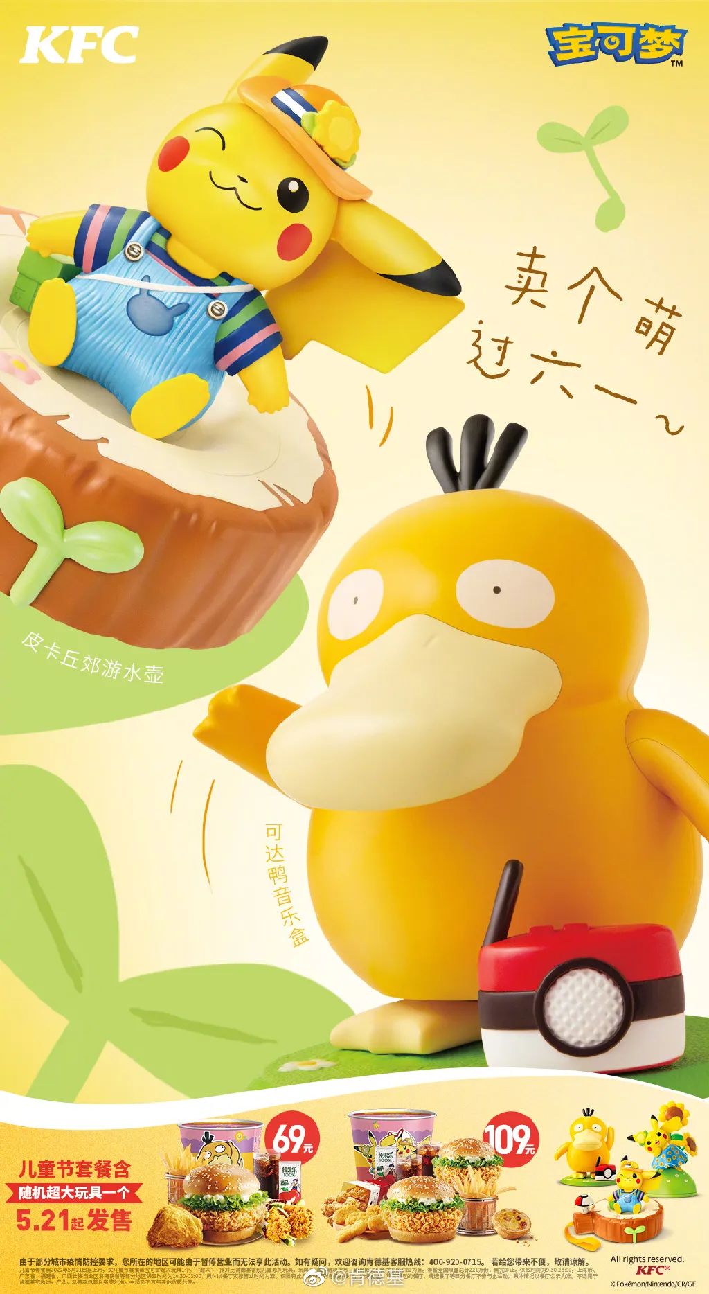 事实上,每年六一儿童节,肯德基都会与宝可梦联名推出相关食玩。只是过去的几年,宝可梦主推的形象一直都是皮卡丘。这次也不例外,皮卡丘形象的食玩在今年的联名中依旧占到了绝大部分,但真正引发抢购热潮的无疑还是这只鸭子。