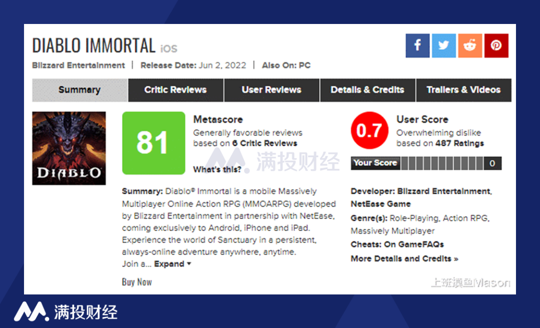 《暗黑破坏神》系列作为暴雪经典的IP,具有巨大的粉丝受众群体,因此尽管评价不佳,《暗黑破坏神:不朽》依旧在多个国家的应用畅销榜上有名。游戏的免费模式使玩家的准入门槛较低,或许会有许多人来尝试这个经典IP的续作,但从目前的风评来看,这款游戏能为动视暴雪带来的收益还是未知数。