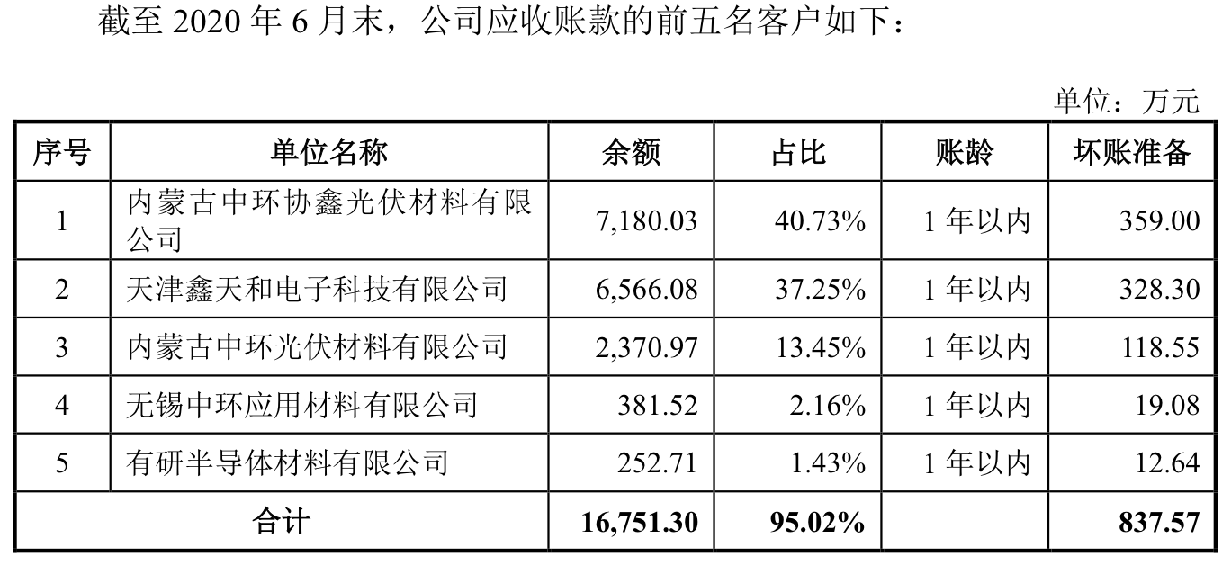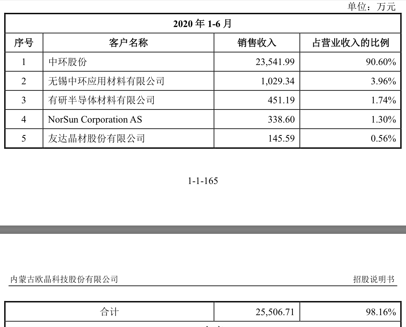 需要指出的是,欧晶科技对中环股份具有依赖,2020年上半年有9成收入来自中环股份,第二大客户无锡中环应用材料有限公司,也在中环股份旗下。