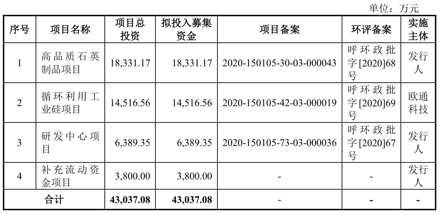 此番,欧晶科技打算募资4.3亿元,投入“高品质石英制品项目”、“循环利用工程硅项目”等,其中“高品质石英制品项目”拟改造升级部分现有太阳能级石英坩埚及其他石英制品生产线。