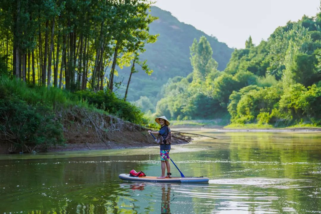 后来,乐璐璐基本上是一边露营一边玩桨板。有时把桨板当船用,把露营装备全部放在板上,划着桨板找适合上岸的露营地;有时把桨板当床用,把桨板固定在岸边的树上,撑开吊床蚊帐,躺在树荫下睡午觉,在虫鸣鸟叫声中睡到自然醒。