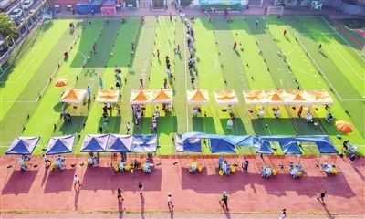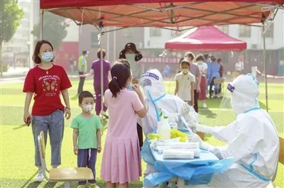 6月5日,我市有序开展全员核酸检测。图为南开区中心小学核酸检测采样点现场。
