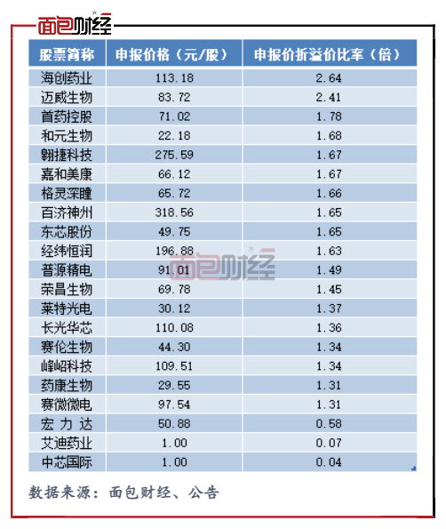 比如,九泰基金对百济神州报出超300元/股的高报价,对中芯国际报1.00/股的超低报价。两个明显不合理的报价均被剔除有效报价区间。
