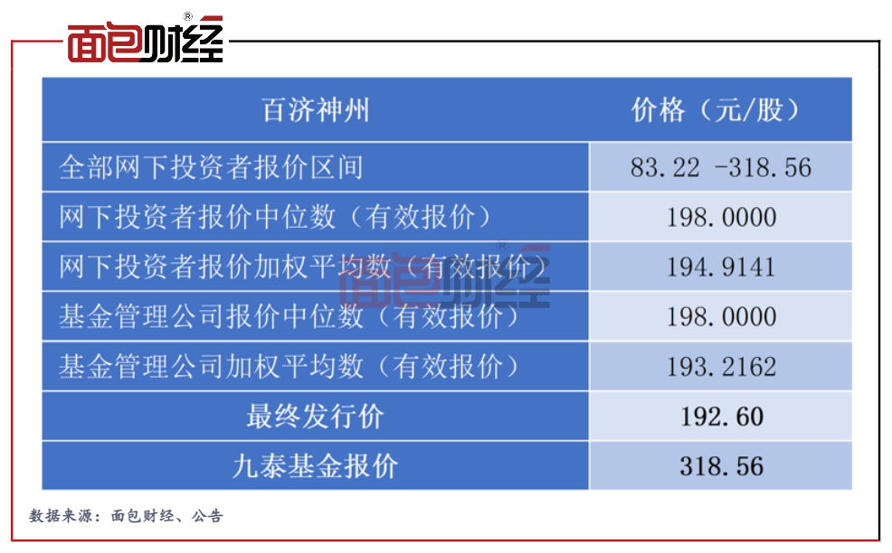 因百济神州将拟申购价格高于 234.50 元/股的配售对象全部剔除,九泰基金在本次IPO中无法参与网下申购。数据显示,进入百济神州有效报价的基金公司报价中位数、加权平均数均不足200元/股,九泰基金的每股报价高于行业平均逾100元。