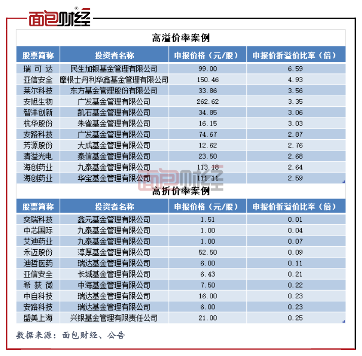面包财经近期将对标相关政策,研究一些公募基金新股报价不合理的典型案例。