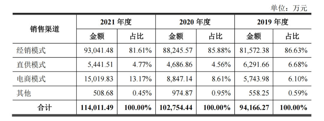 可以发现,登康医疗对经销商模式的依赖逐步减轻。招股书指出,这是疫情影响和公司加大线上电商投入的结果。