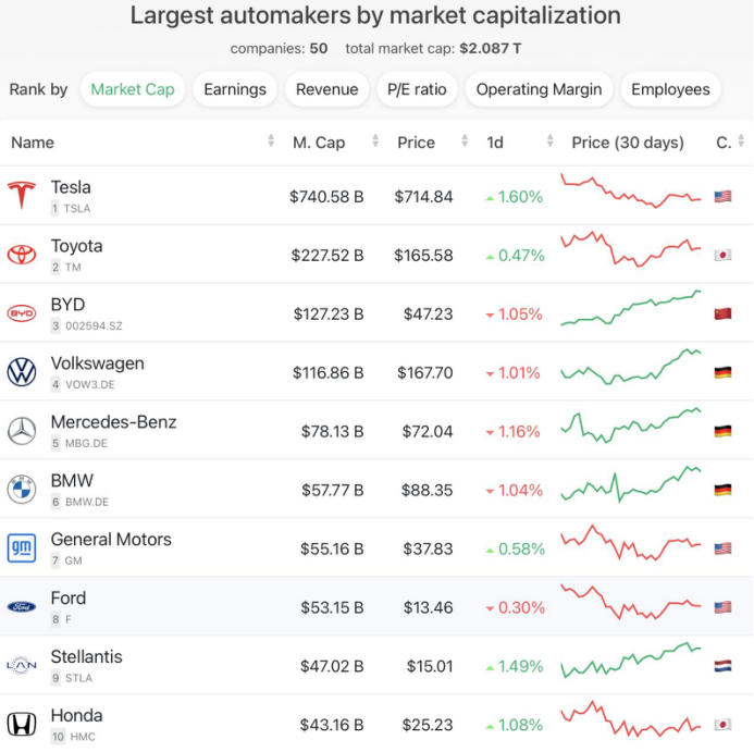最新市值显示,比亚迪超越大众,成为全球第三大车企,仅次于特斯拉和丰田。