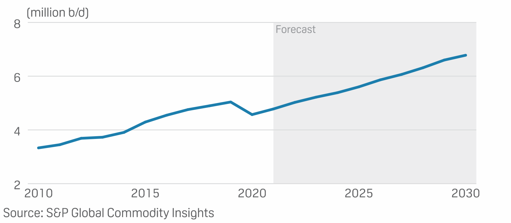 据伍德麦肯兹预测,预计到2030年,印度的LNG需求将增加到3600万吨/年;2040年增加到6300万吨/年;2050年增加到7800万吨/年,与澳大利亚目前的LNG年产量水平相当。