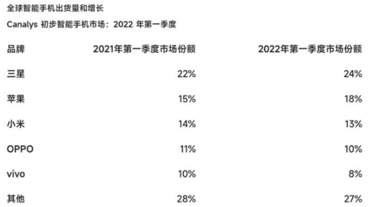 从一季度市场出货量来看,全球智能手机品牌除三星、苹果外,国产品牌市场份额下滑达到4%,且各家无一幸免。