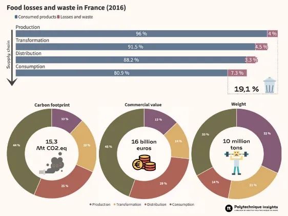 - 2016年,法国的食品损耗和浪费总计约为1000万吨,相当于每人每年30公斤。