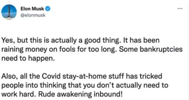 真正让马斯克不喜欢居家办公的还是效率。他最近在推特上吐槽:他们(那些远程办公的企业)多久没有发布过伟大的产品了,想创造改变世界的产品,不能靠电话沟通。
