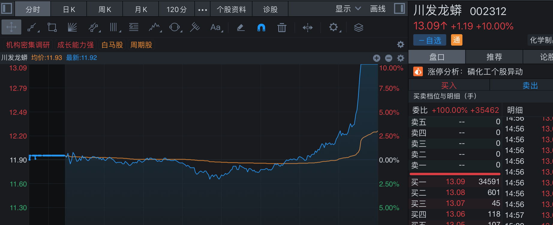 6月8日,整个A股市场开始活络,在尾盘被拉升至涨停的川发龙蟒(002312.SZ),令人印象深刻。