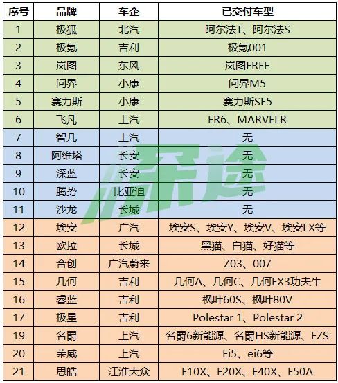 一类是已经量产的新品牌,极狐(北汽)、极氪(吉利)、岚图(东风)、问界(小康)、飞凡(上汽)等,这是传统车企推出的自主品牌,在玩法上完全对标新势力,而且定位很高端。