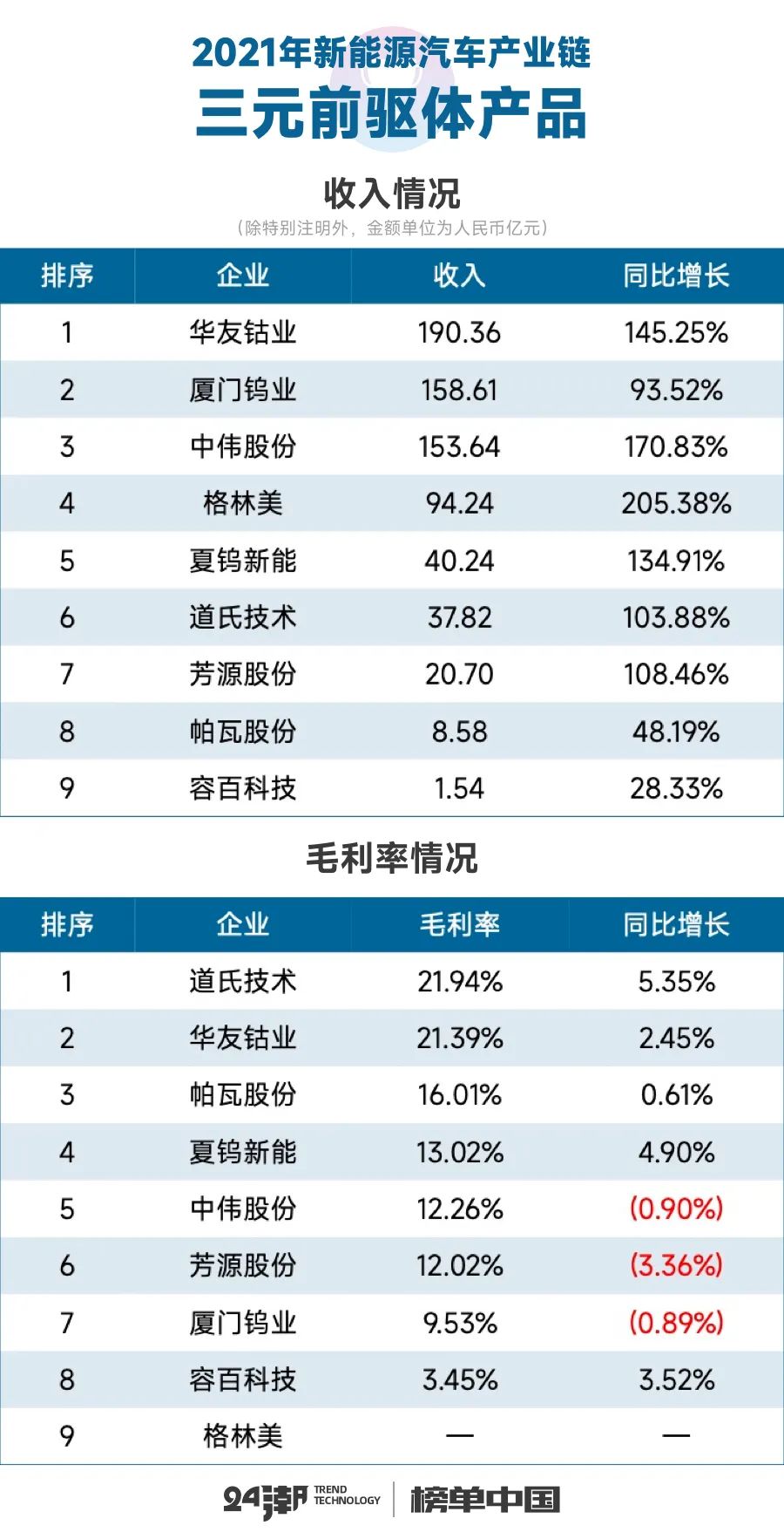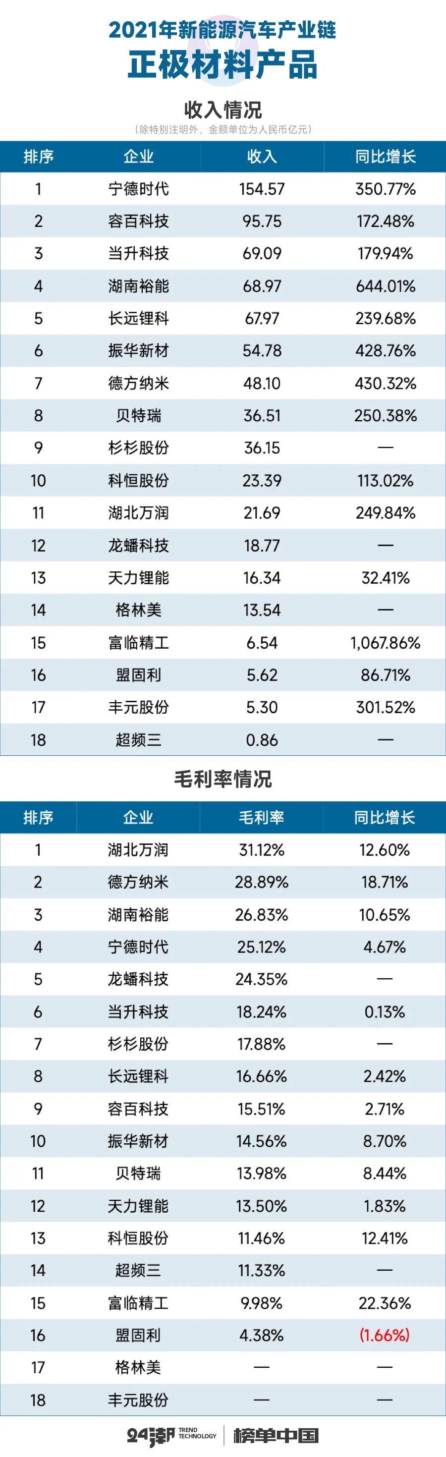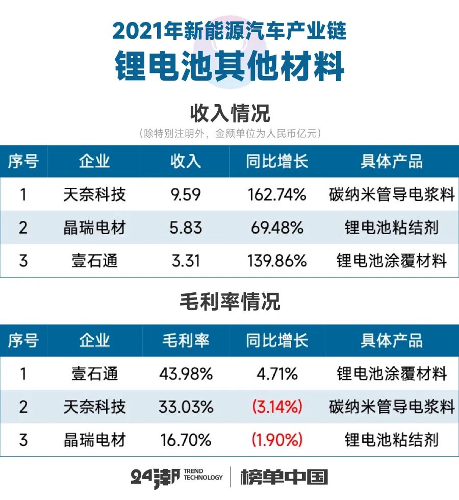 其中增长最快的前三个领域为:正极材料-整体销售收入增长296.45%;电解液及材料-增长211.21%;锂电池回收-增长176.98%。