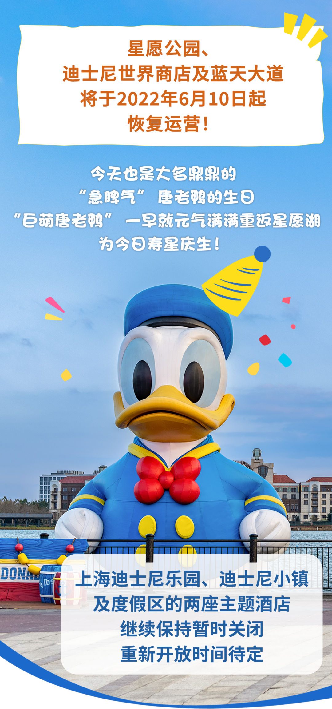 据“上海迪士尼度假区发布”微信公众号9日消息,星愿公园、迪士尼世界商店及蓝天大道将于6月10日起恢复运营,上海迪士尼乐园、迪士尼小镇及度假区的两座主题酒店继续保持暂时关闭,重新开放时间待定。