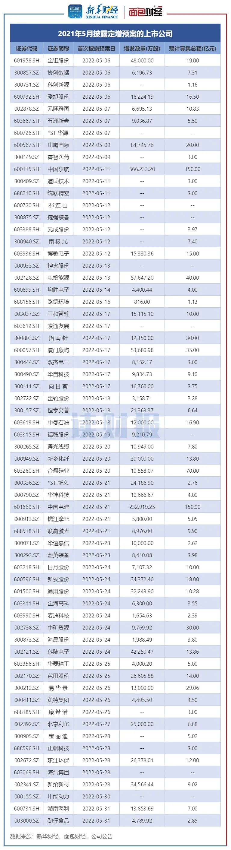 图2:2022年5月实施定增的上市公司(按定增股份上市日统计)