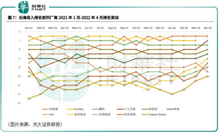 开源证券指出,根据data.ai数据,2019-2021年中国出海移动游戏的用户支出占海外移动游戏市场份额分别为17%/20%/21%,中国游戏在海外的市占率稳定扩张,在2021年全球发行商52强中,中国发行商数量也首次超过美国实现登顶,中国游戏厂商的国际竞争力不断提升。