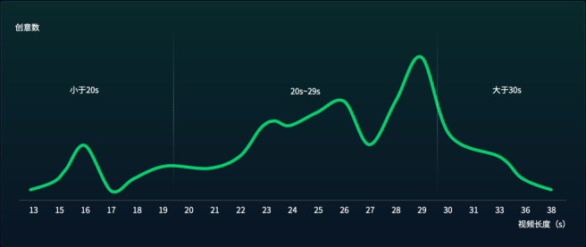 根据官方数据来看,目前小游戏视频素材时长大约分为大于30s、20-29s以及20s以下,并且从素材数量来看20-29s视频素材占比较高,30S以上占比最少。