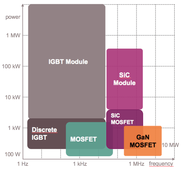 这就是为什么许多供应商也在开发和交付基于两种宽带隙半导体——氮化镓(GaN)和碳化硅(SiC)的新型功率器件。在一段时间里,市场上GaN和硅基功率器件在不同领域与硅基IGBT和硅基MOSFET竞争。虽然GaN 和 SiC 器件效率更高,但它们也更昂贵。