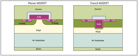 多年来,功率 MOSFET 得到了改进。根据 B. Jayant Baliga 在其《功率半导体器件基础》一书中的说法,在上世纪70年代,第一批器件是基于平面栅极结构。Baliga 是 IGBT 的发明者,一名来自北卡罗来纳州立大学的教授。