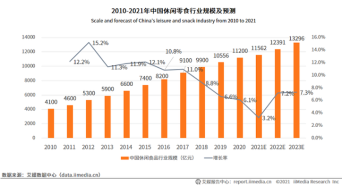 按零售额计算,2020年我国休闲食品行业规模达 7749亿元,预计2025年将达到11014亿元。其中,种子及坚果炒货2020年零售市场规模约1415 亿元,约占 18%,是占比第二高的品类,预计2025年零售总规模将达到2173亿元。而瓜子行业的规模只有300亿元左右(2018年)。