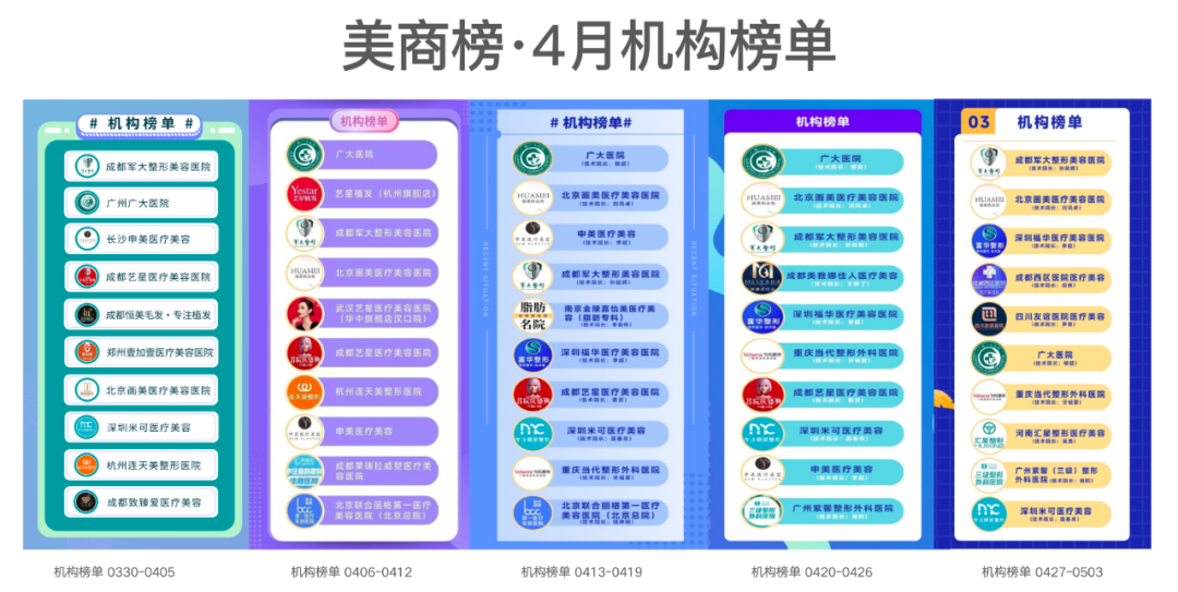 美商榜0406-0412丨美体项目热度见长,艺星旗下三家机构上榜