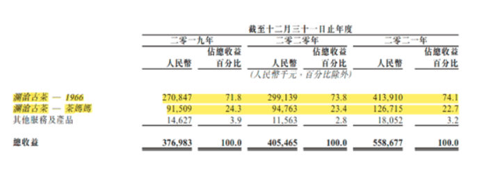 究其原因是旗下产品1966和茶妈妈的毛利率下跌。2019-2021年,1966的毛利率分别为59.2%、76.1%和71.8%;茶妈妈的毛利率分别为62.5%、55.9%和52.1%,澜沧古茶的毛利率主要依赖品牌线,1966和