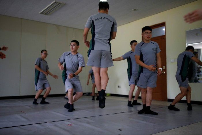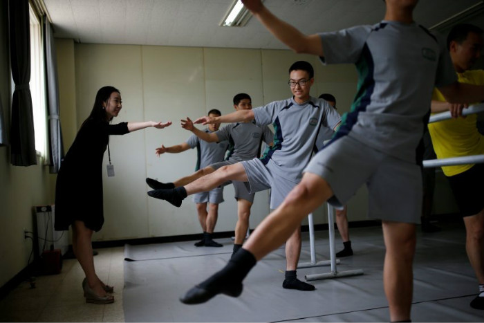 去年韩国启动了一项芭蕾舞计划,让士兵们每15人一组,每周参加一次芭蕾舞课以寻求内心宁静。