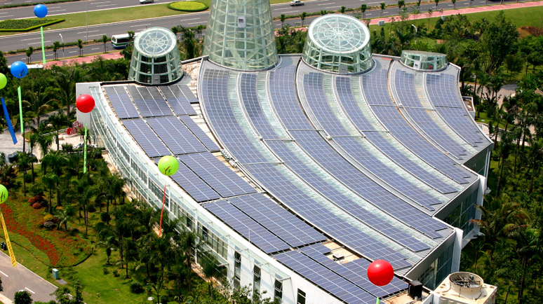 我国对于太阳能资源的利用,可以从2004年开始说起,当时在深圳国际园林花卉博览园斥资6600万元建设了1兆瓦级太阳能设备,为该园区提供电量,成为了亚洲总装机量第一的并网发电系统。2006年,在上海交通大学风雨操场建设光伏发电示范点,一项投资1亿元的兆瓦级太阳能光伏发电项目。在2012至2013年,中国政府又先后颁布了“十二五”规划和光伏补贴政策,大力支持与发展光伏产业,推进了西北地区光伏电站的建设和加强人民群众对光伏的认知度,因此在2014初,光伏发电站总功率为28.2GW,位列全球第二大太阳能产国,仅次于德国,超越了原本第二的日本。据彭博新能源财经预测,中国光伏市场将会在明年成为全球第一大市场,以及具有全球最高功率太阳能光伏地面电站。