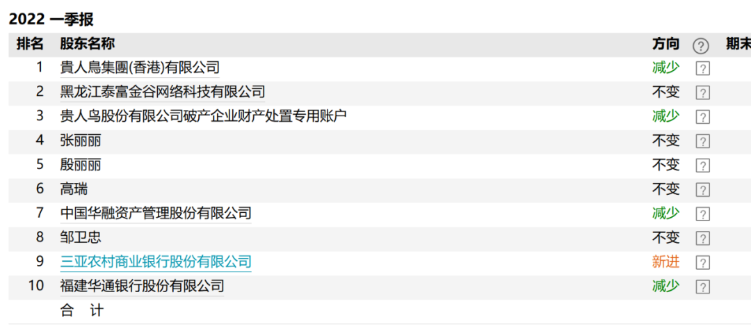 2022年一季报显示,贵人鸟前三大股东分别持股26.18%、20.36%、4.72%。