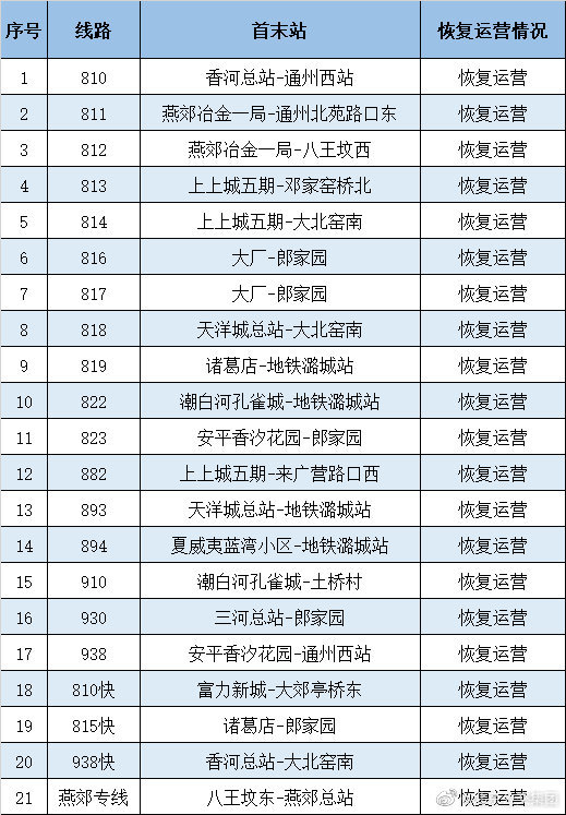 明起跨北京和廊坊市北三县的21条公交恢复运营。