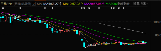 资本市场上,各路资本更是用脚投票。三元生物自今年2月份上市以来,股价掉头直下,从最高点146元一路下跌到60.61元,跌幅将近六成。