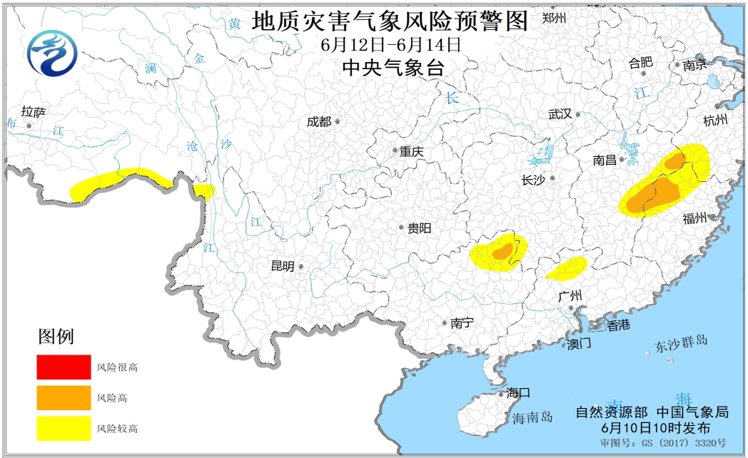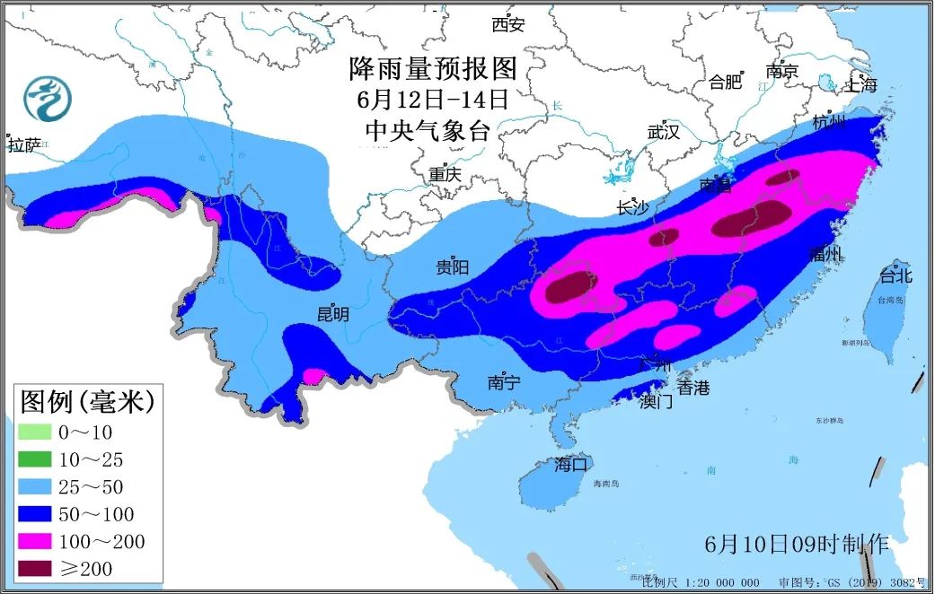 预计6月12日至14日,长江以南地区自北向南将出现强降雨过程,具有影响范围广、降雨强度大、致灾风险高的特点,强度超过6月3日至6日的降雨过程,且降雨落区与前期高度重叠。