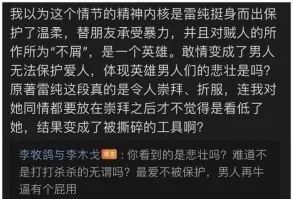并且在粉圈流传的初版剧本中,这一段剧情是“强暴未遂”,有网友认为是导演李木戈将剧情改了回去,以这种对古代贞操观念重大打击的情节,作为角色“黑化”的契机,也有些迂腐陈旧。