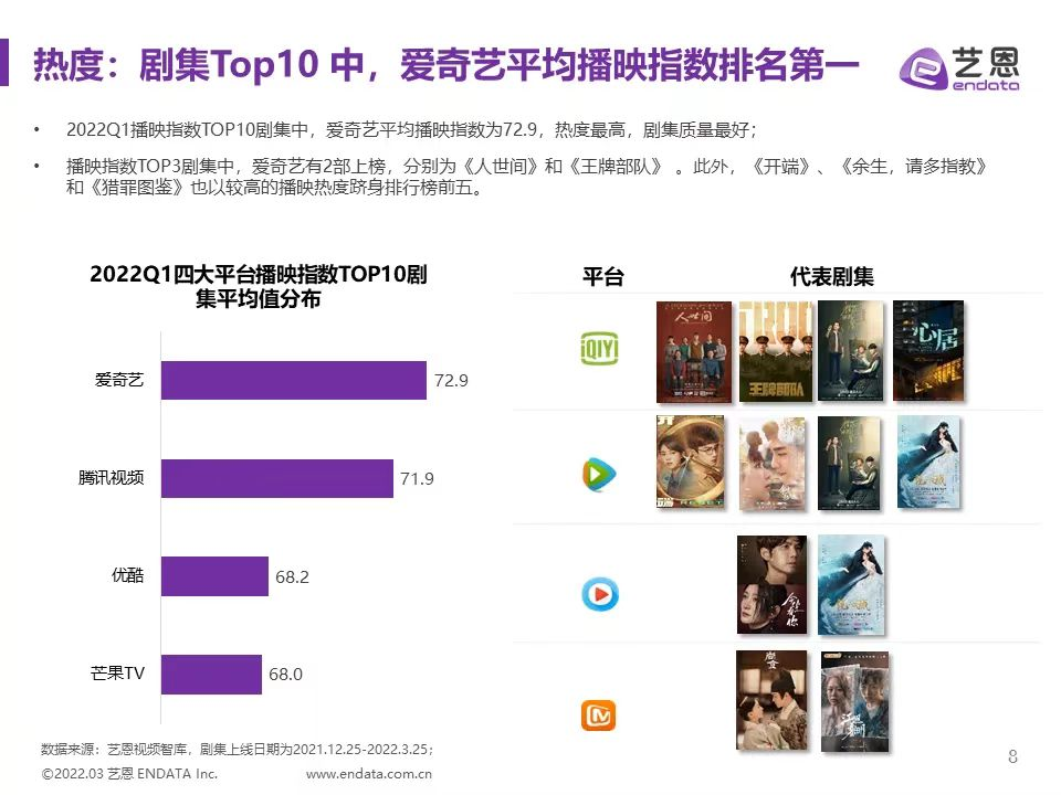 回看今年上半年(截止6月10日),Q1季度,爱奇艺以《人世间》《心居》《一闪一闪亮星星》(黑马)三部作品封顶,爱奇艺也顺势成为今年Q1剧场平台最大赢家——4月发布的财报里,爱奇艺2022年Q1季度盈利1.7亿元,其12年来首次实现盈利的消息令市场振奋。