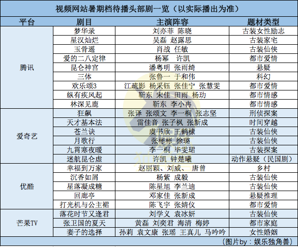 总的来看,今年暑期档三家平台看点十足、“储货”满满,这也为接下来的暑期之争留下更多悬念。