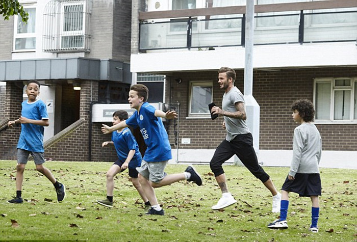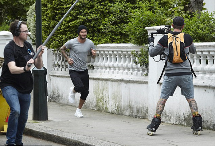 天空体育正在为英超联赛报道制作一则新广告。该广告片将在一分钟内展示整个赛季能经历的所有情绪。拍摄场景中,贝克汉姆忍受恶劣天气、与粉丝一起庆祝、被一条狗追逐。天空体育这一广告片拍摄过程中,摄影师用了一种特殊的方法,踩着轮滑跟拍。22日,这部广告短片将首次在电视上播出。
