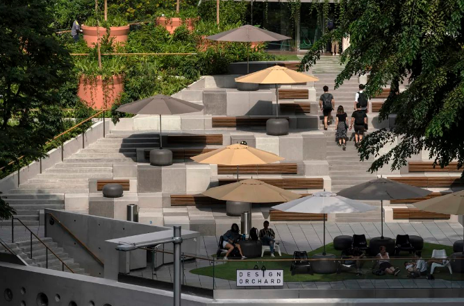位于新加坡乌节路的Design Orchard综合体,是一个融合了零售展示空间和创意孵化空间的代表性商业空间。