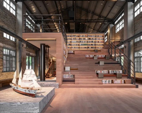 借由大台阶的空间布局,书局中形成了多元而丰富的空间组合,看书、游逛、休憩,开放的空间以现代化的方式,在这艘以“船舶”为设计灵感的方舟上被重新演绎。