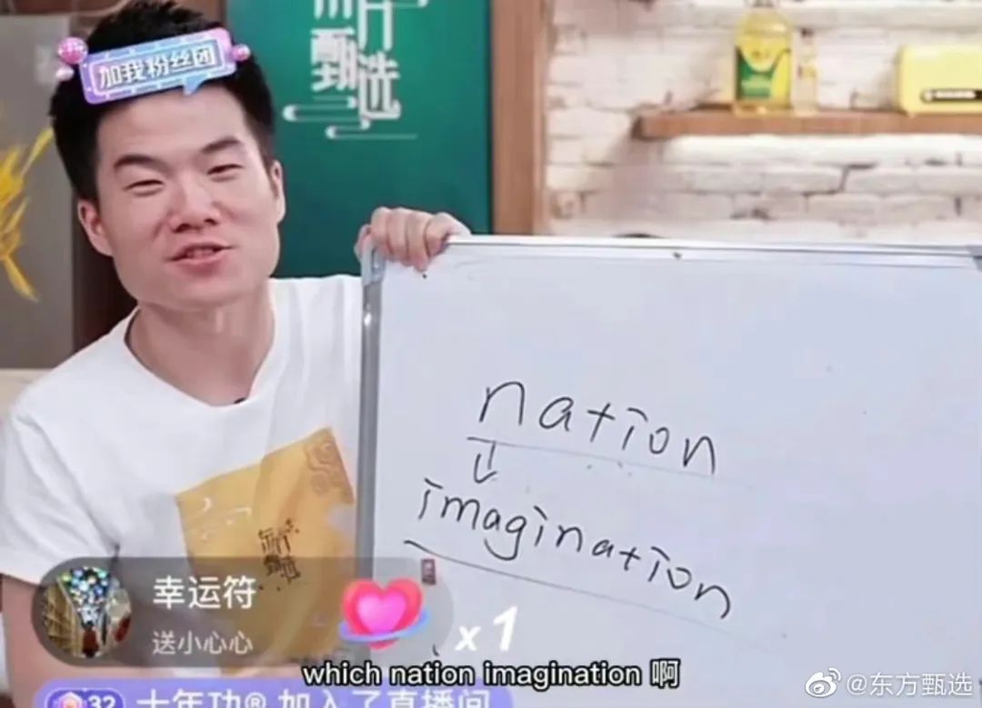 关于东方甄选最近爆火的原因,很多人都会归结为直播内容的差异化。比如在6月10日上午场的直播中,8年带过50万名学生的新东方英语老师董宇辉,左手扶着“小白板”,右手拿着白板笔,一边用中英文讲解产品,一边和直播间的粉丝们插科打诨,还不时地进行一段英语教学。