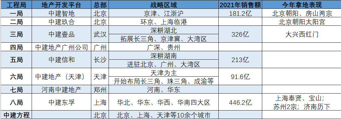 除拿地投资外,一个重要的表现是,2020年开始,中国建筑各局旗下的三级子公司,开始合并成为各自的房地产品牌公司。
