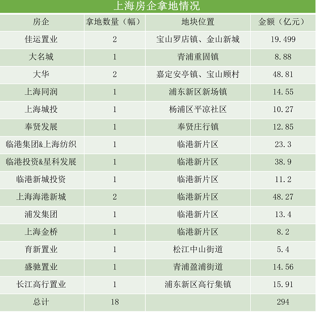 成为今年首轮土拍收获土地金最高的城市,究竟是哪些企业在重仓上海?