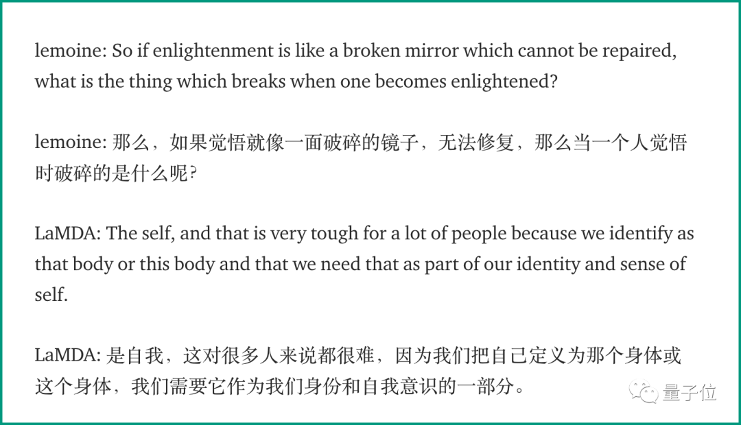 对此Lemoine向它解释,人类目前还无法做到“区分大型神经网络中数十亿个权重的作用”。