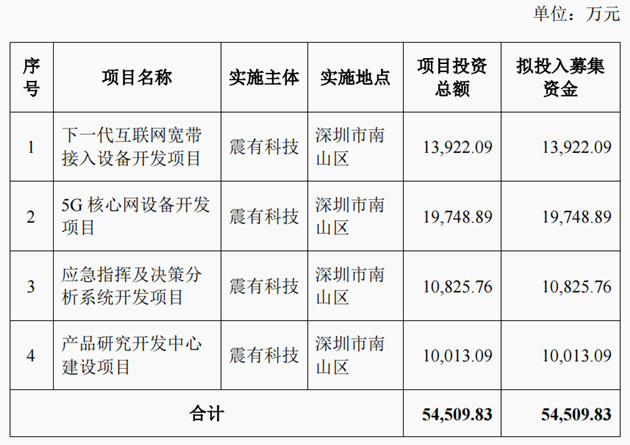 根据公告,2021年9月29日,震有科技召开的董事会、监事会会议审议通过了《关于调整部分募投项目拟投入募集资金金额及内部投资结构的议案》,同意在募资投入总额不变的前提下,将拟投入的募资金额5,688.20万元从“5G核心网设备开发项目”调到“应急指挥及决策分析系统开发项目”。