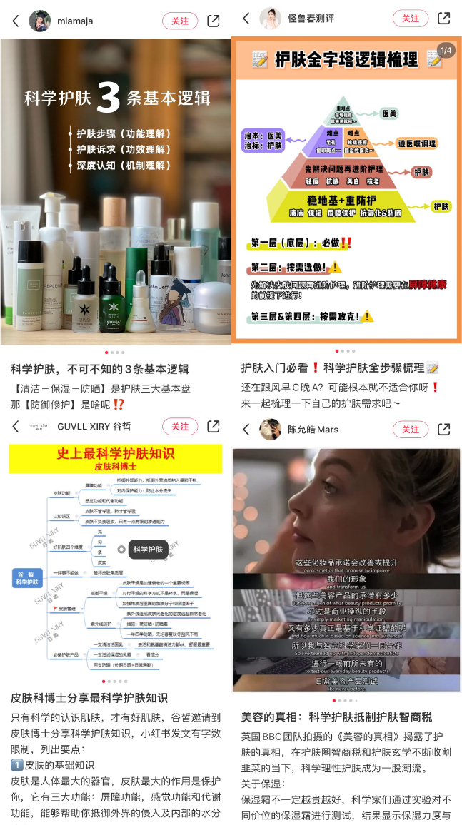 至此,中国化妆品市场正式进入功效时代,而消费者的护肤逻辑也从“成分党”、“功效党”全面进化为科学护肤。目前在小红书上,“科学护肤”词条已经有近10万条笔记。