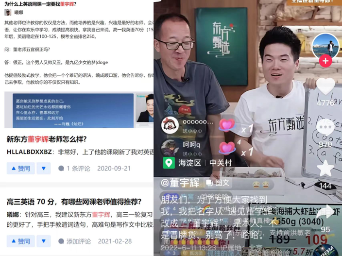 按理说这么优秀的英语老师,在新东方去年断臂后完全可以“一走了之”,他可以做私域辅导;也一定有家长会悄悄地高薪聘请他;甚至自己创办补习学校也未尝不可,毕竟双减对于高中的影响并不大。但是董老师还有许多新东方的优秀教师们,没有“抛弃”俞敏洪,而是跟随着公司转行了直播。