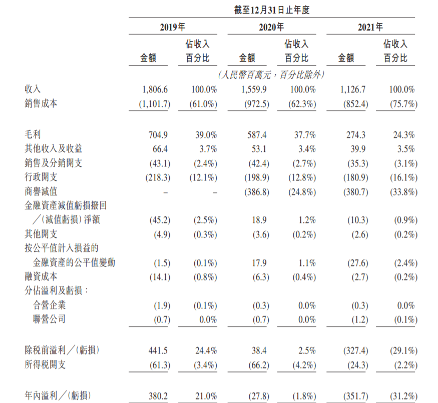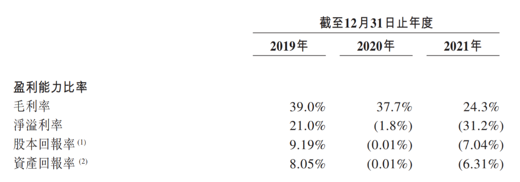 2019-2021年,星空华文分别实现收入18.07亿元、15.6亿元和11.27亿元,呈现逐年递减的态势。同期净溢利分别为3.8亿元、-2780万元、-3.52亿元,去年出现了大额亏损。毛利润的缩水更为惨淡,从2019年的7.05亿元下滑到2.74亿元,缩水了61%。毛利率则在两年间缩水了14.7个百分点。