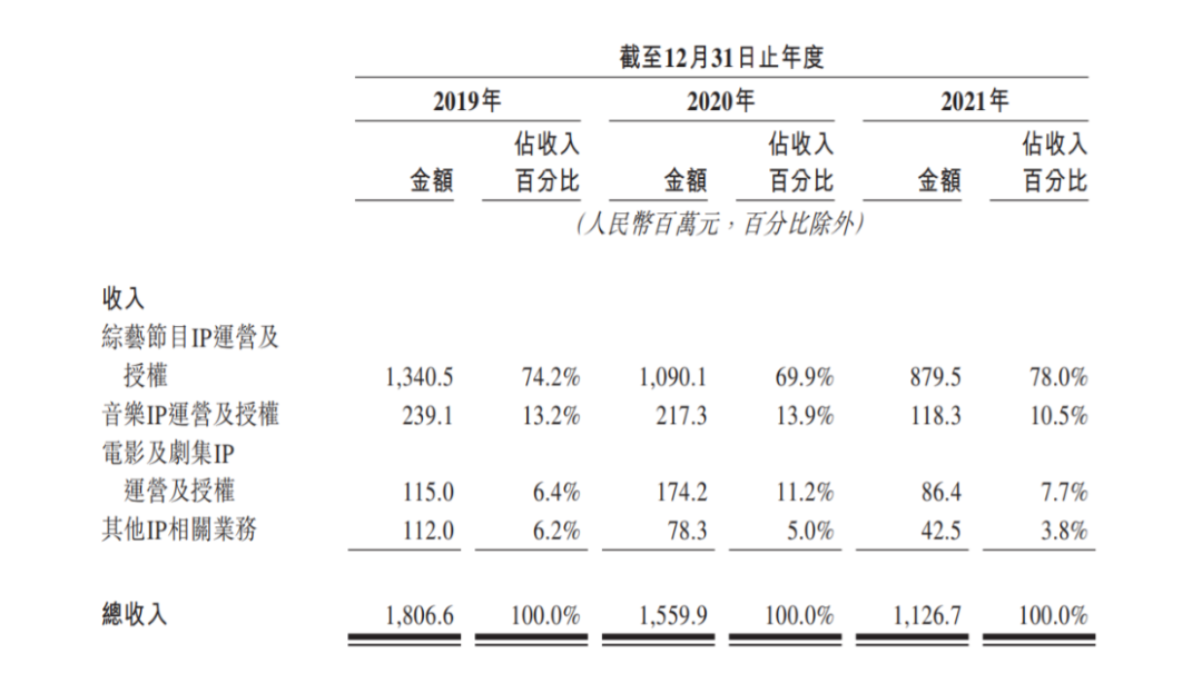 综艺节目关注度的下滑,客观上也导致了其他业务的低迷。音乐IP运营及授权业务收入从2019年的2.39亿元大幅下滑到1.18亿元,缩水了50.5%。而电影及剧集IP运营及授权业务虽然受影响相对较小,但收入也下滑了24.9%。