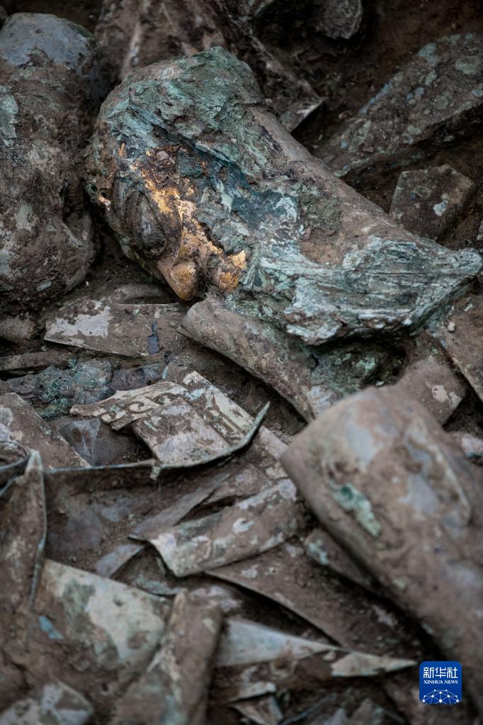 这是在三星堆遗址8号“祭祀坑”拍摄的铜神兽(6月1日摄)。新华社记者 王曦 摄