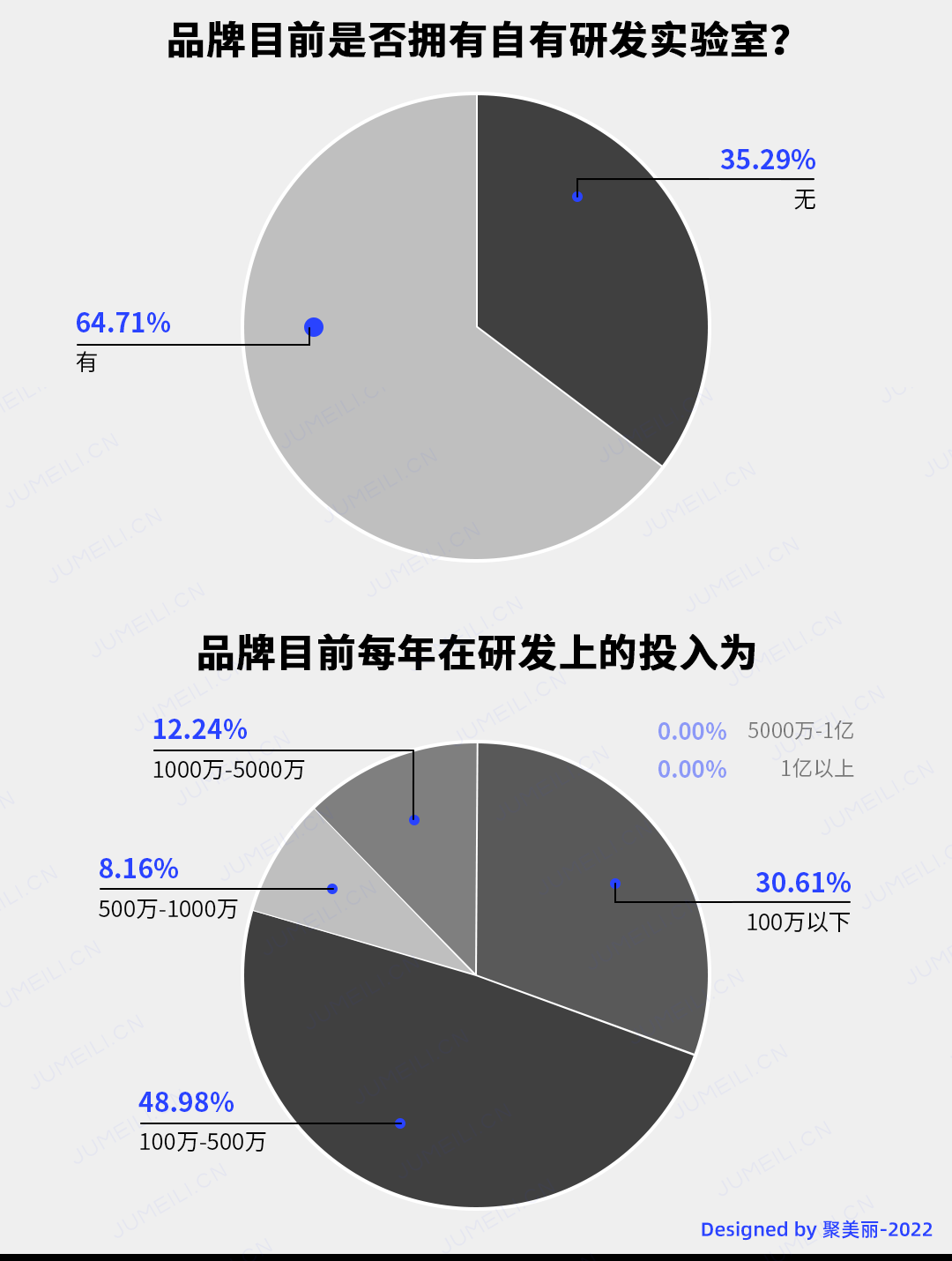 如下图,在接受问卷调查的品牌中,有一半以上的品牌拥有自有研发实验室。